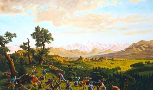 George Catlin painted "Ball-play of the Choctaw--Ball Up" during a period of intense westward expansion in the 19th-century United States. Catlin, like many artists of his era, was captivated by the visual spectacle of Indigenous cultures, even as government policies were enacting their forced removal and assimilation. Here, Catlin depicts a Choctaw ball game, a highly ritualized and athletic event central to their community life. However, it's important to consider the power dynamics at play: Catlin, a white American artist, is presenting his interpretation of Choctaw culture to a predominantly white audience. What might be lost in translation? The emotional and social context, the deep-seated meaning of the game beyond mere sport. Catlin’s work occupies a complicated space, it both documents and, inevitably, exoticizes. As we look, let’s consider what stories are being told, and whose perspectives are centered. How does Catlin's gaze shape our understanding of this vibrant scene?