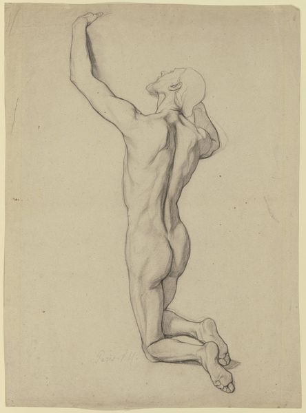 Editor: Here we have Gerard Allebé’s pencil drawing, "Studie naar een klassieke beeld," possibly from 1827. It's a detailed study of a male figure, all lines and shading. It seems almost clinical in its precision, but it is really amazing. What can you tell me about this artwork? Curator: Look closely at the precision with which Allebé renders the musculature. It points to the labor involved, not just the artist's labor but also the unseen labor of those who originally quarried the marble for the classical sculptures that informed this drawing. Consider this drawing as a product of academic artistic training, emphasizing rigorous study and the mastery of materials, connecting it directly to the socioeconomic structures of art production and consumption in the 19th century. Editor: That’s fascinating. So you're saying the pencil itself is more than just a tool; it's a link in a chain of production? Curator: Precisely! Pencils, paper, and even the studio space all contribute to the final product, revealing the broader material conditions in which Allebé was working and how art education itself was structured around specific materials and techniques. Editor: I never really thought about it that way, focusing more on the subject and the artist's skill. Curator: The focus on skill is important, but we need to acknowledge the labor, production processes and the availability of materials involved to truly appreciate the piece in a fuller context. Editor: Right, so by analyzing the materials and production, we see how even a study like this is embedded in a much larger system of art-making. Thanks for clarifying! Curator: Exactly. It challenges us to see art not just as an individual creation, but as a product of material conditions.