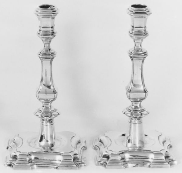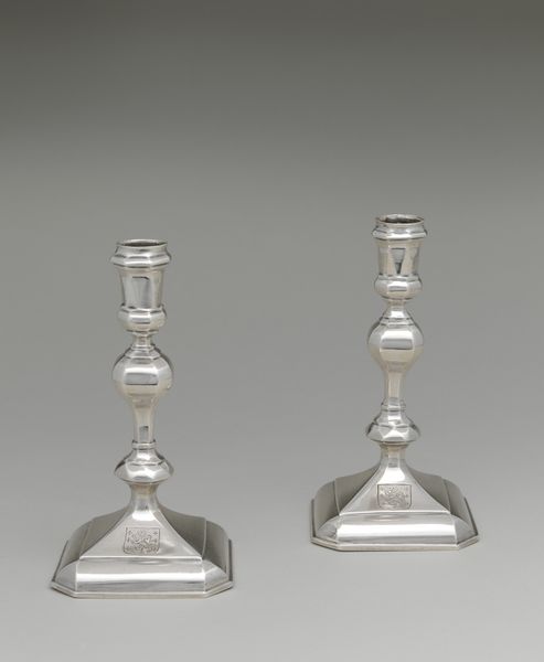 This miniature taperstick is one of a pair made of silver by David Clayton, an English silversmith who lived from 1659 to 1719. Clayton operated in a London shaped by immense social change and the rigid structures of class that defined the late 17th and early 18th centuries. These tapersticks aren’t just functional objects; they're emblems of status. The silver from which they are crafted speaks to wealth, while the diminutive size suggests use in private, intimate settings. Imagine them gracing a writing desk, casting a soft glow as someone pens a letter, perhaps sealing it with wax to send across the world. Clayton’s work provides an intimate glimpse into the material culture of the elite. It invites reflection on the power dynamics inherent in even the most seemingly innocuous items.