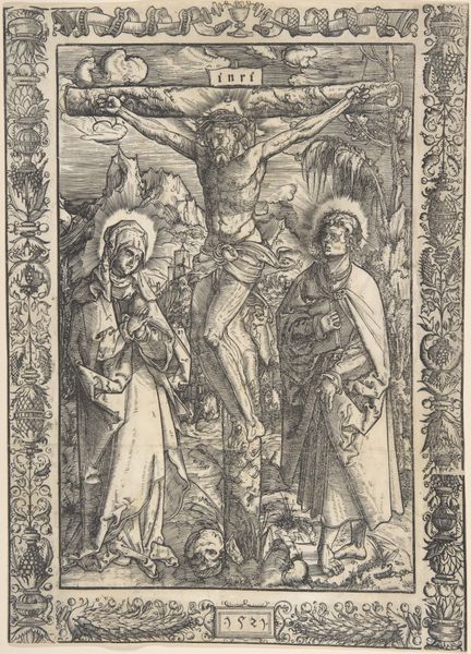 Agostino Veneziano created this engraving, "Saint Dominic and the Holy Saints of His Order with the Crucifix," in Italy, sometime in the early 16th century. The image depicts Christ on the cross as he is adored by Saint Dominic and other members of his order. This artwork is a window into the religious and institutional landscape of Renaissance Italy. The Dominican Order, founded in the 13th century, played a crucial role in the Catholic Church, particularly in education and combating heresy. Note how the artist uses the visual language of the time, such as the serene composition and idealized figures, to convey a sense of divine order and religious authority. To fully appreciate this engraving, we might investigate the history of the Dominican Order, the artistic conventions of Renaissance Italy, and the role of religious imagery in shaping social and spiritual beliefs. Art history is about understanding the interplay between artistic expression, social structures, and institutional power.