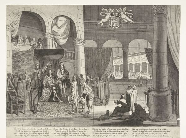 This print, made by Izaak Jansz. de Wit in 1787, captures a pivotal moment in Haarlem's history using etching and engraving on paper. These techniques, rooted in skilled labor, involved meticulously incising lines onto a metal plate to hold ink, a process demanding precision and patience. The print depicts the swearing-in of the Pro Aris et Focis Society, one of Haarlem's three militia battalions. Notice how the linear quality of the engraving lends a crisp, documentary feel to the scene. The dense hatching creates a sense of depth, emphasizing the weight of the moment and the solemnity of the gathering. Consider the social context: these militias played a crucial role in maintaining order, embodying civic duty and the protection of property. De Wit's choice of printmaking allowed for wider dissemination of this image, reinforcing the values of the society and the importance of communal responsibility. The labor-intensive process mirrors the commitment of the citizens depicted, linking the artwork to broader themes of labor, politics, and civic engagement. Appreciating these elements encourages us to think about the artwork, and its ties to wider social issues.