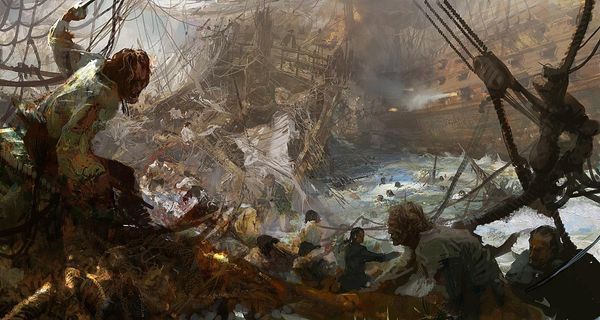 Editor: So this is "Black Canaan Cover," painted by Ken Kelly in 1978. It’s oil paint and, wow, what a dynamic piece! It feels ripped from a pulp magazine. There’s this Conan-esque figure battling gigantic scorpions against a really dramatic sky. It’s got that old-school fantasy vibe. What's your take on it? Curator: It's a journey, isn't it? This artwork plunges us into the heart of primal struggle. I see Romanticism wrestling with raw pulp energy. The hyper-masculine figure is ready to charge headlong into anything, reflecting some deep-seated need to conquer something, perhaps ourselves. The scorpions aren't just monsters, they are born from nature...dark impulses ready to strike. Ken Kelly’s painting also hints at something elemental, like those crashing waves under the fiery glow...almost primordial! Don’t you feel that undercurrent? Editor: I totally get the elemental aspect and Romanticism colliding, like Turner meets Frank Frazetta! The sky is incredible. Curator: Precisely! Think about that lone figure; Kelly is echoing the old masters and their landscapes, and presenting their scale with someone small versus untamed power and a dark future. How does that impact how you experience it? Editor: Makes you feel tiny but also defiant. It’s that human spirit thing, right? You almost root for the little guy against the odds, even with the knowledge of his small stature in this arena. Curator: It speaks to a desire to overcome the obstacles, the darkness... perhaps find that elusive Canaan even in our own lives, wouldn't you say? Editor: Absolutely! So much more to this than just some muscle-bound hero. Thanks for the insights. It is indeed like cracking a forgotten, bittersweet tale. Curator: My pleasure. Art like this is an echo, waiting for the listener to awaken and truly give the characters their voices.