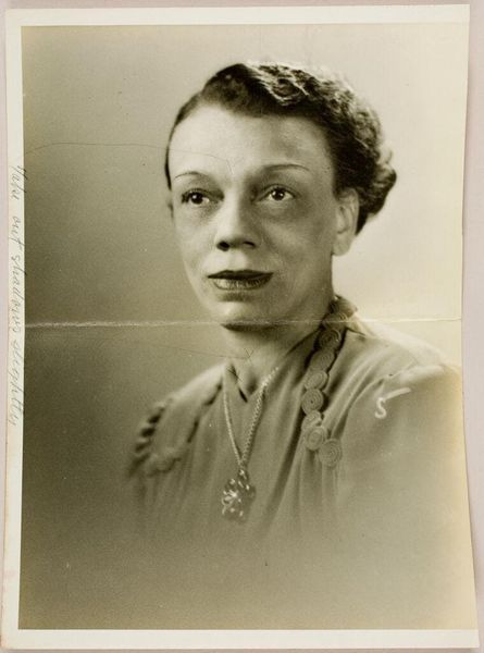Curator: Ah, here's one that's really stuck with me: Deborah Luster's photograph, "Christine Levy, St. Gabriel, Louisiana," created around 1999. Editor: My goodness, the gaze! It's so direct, almost confrontational, yet something in her expression hints at an untold story. Curator: It’s more than a story. Luster’s portraits are never *just* portraits. Look at how the low key lighting isolates the face, rendering a timeless, ethereal quality that transcends the sitters individuality. The slight sepia tone also contributes to the nostalgic mood. Editor: I agree. That tone evokes antique daguerreotypes, placing her among ancestral images, or even icons. It creates a compelling tension; like, is this an ancestor or a modern woman? Is she a saint or an everywoman? That flower behind the ear – could it be a veiled reference to something like the purity often symbolised by white flowers in art history? Curator: Could be! To me, it feels more like a touch of everyday defiance against the harsh realities. Luster is deeply interested in themes of injustice and trauma, which can be witnessed, for example, in her "One Big Self: Prisoners of Louisiana". This photograph could have had roots with similar people or stories. This raw and unvarnished directness strips away any artifice, leaving us face-to-face with vulnerability. Editor: The unvarnished quality is so apparent here. It invites the viewer into a very intimate space. In my opinion it transcends a mere photo to become a meditation on presence, resilience and, ultimately, acceptance. Curator: A powerful statement encapsulated in a single frame. The light makes you feel like it could be emerging out of shadow itself, not only as illumination of form but more as revelation. Editor: Yes! The subject emerges. Like a soul coming out of the dark. Well, thanks for the illuminating insight, as always! Curator: My pleasure, and may your mind continue to discover.