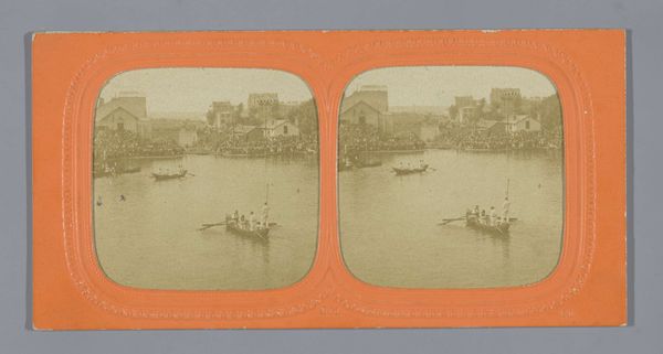 This stereoscopic image, made by Jules Marinier, presents a view of the Kloveniersburgwal in Amsterdam. It was achieved through a photographic process involving the careful manipulation of light-sensitive chemicals on a glass or paper support, now faded to sepia. Photography’s advent in the 19th century was deeply intertwined with industrial advancements and an emerging visual culture. The proliferation of photographs like these, facilitated by new technologies and distribution networks, speaks to a growing appetite for capturing and consuming images of the world. The stereoscopic format, which creates an illusion of depth, offered viewers an immersive experience. Consider the labor and materials involved: from the mining of silver for the photographic emulsion to the skilled craftsmanship required to operate the camera and develop the print. The production of these images, which are now quaint and antique, reflects the capitalist mode of production. By considering these aspects, we can better understand the complex social and economic forces that shaped not only the image itself but also the world it represents. It prompts us to challenge the traditional boundaries between art and commerce, urging us to appreciate the intricate web of relationships that connect the artwork to its historical context.