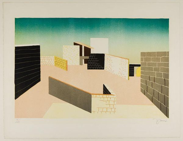 This untitled artwork by Edmund D. Lewandowski uses an industrial colour palette of blues, greys and reds, sharply delineated in opaque blocks to abstract the lines of the image. Looking closely, I see that Lewandowski has built this image up through a process of layering, each precisely-placed form determined by what has come before. There is a strong sense of geometry which belies the subtle variations in tone and texture that make this feel like a hand-made, rather than mechanical, image. The brushstrokes visible within the blocks of colour suggest the human element, hinting at the artist's touch in constructing this scene. The red block which suggests a building in the middle of the image, draws my eye again and again. Its warmth anchors the image, despite its small size. It makes me think of the industrial paintings of Charles Sheeler, but with a modern, playful touch. Ultimately, it reminds us that art is a conversation across time, always open to new interpretations.