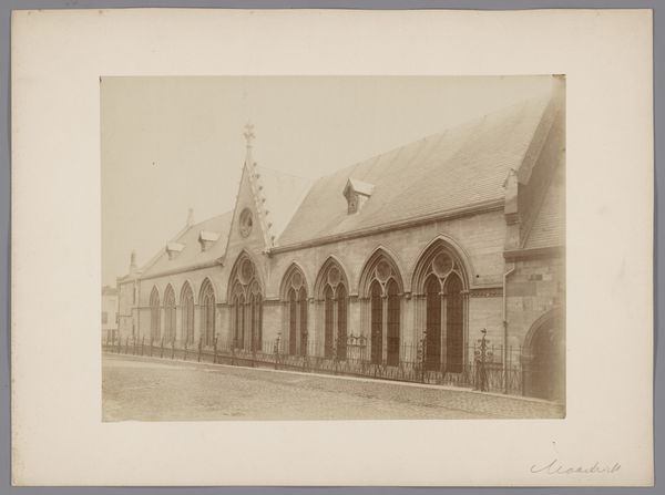 This photograph, "Gezicht op het treinstation van Bremen" by Louis Koch, presents a striking view of Bremen's train station. The sepia tones create a nostalgic atmosphere, emphasizing the station's architectural mass and linear details. The station dominates the frame, its structure delineated by strong horizontal lines broken by arched windows, suggesting a powerful blend of classical and industrial aesthetics. Koch's composition invites us to consider the station not just as a transport hub, but as a symbol of modernity. The meticulous arrangement of lines and forms creates a sense of order and progress, echoing the rapid industrialization of the era. The placement of human figures in the foreground underscores the station’s scale, and their diminutive size emphasizes the station's function in managing the flow of human traffic through space and time. The photograph presents an interpretation of space. Koch uses the camera to capture the station's architecture in a way that speaks to the cultural values embedded in technology and urban development. Ultimately, the photograph serves as a cultural artifact, inviting ongoing readings about how we perceive and interact with the built environment.