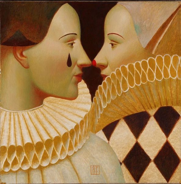 Andrey Remnev, born in 1962, painted "Metamorphosis," with oils, in a style that evokes both Russian Symbolism and the Renaissance. Born in Russia, Remnev’s artistic expression is steeped in the traditions of Russian art. The two women depicted seem to occupy an ethereal space, their androgynous beauty referencing both classical ideals and the pre-Raphaelite brotherhood’s exploration of romantic themes. Framed by the vivid red backdrop and the delicate flora, the figures convey a sense of serenity, but also detachment. We might think about the artist's intentions and the cultural context in which he was working. What does it mean to represent femininity in this way? Are we looking at an idealized image, or a more complex commentary on gender and identity? These are the questions that stay with me when viewing Remnev's "Metamorphosis."
