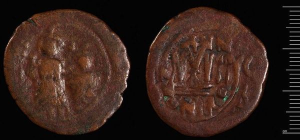 This bronze follis coin was produced in Cyzicus during the reign of Maurice Tiberius, who ruled the Eastern Roman Empire from 582 to 602 AD. As a piece of currency, this object was deeply embedded in the socio-economic structures of its time. The coin presents an image of Emperor Maurice, his likeness acting as a symbol of power and authority, crucial for maintaining social order and validating economic transactions within the Empire. The inscriptions, though worn, would have further reinforced the coin's legitimacy and value. Minted in Cyzicus, a significant commercial center, this follis reflects the city's economic importance within the Byzantine trade networks. Understanding the historical context involves delving into numismatic archives, Byzantine historical texts, and archaeological reports. Each coin provides a tangible link to the past and offers insights into the Empire’s economic, political, and social life.