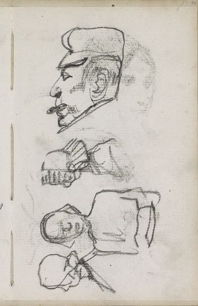 George Hendrik Breitner created this sketch of café visitors using graphite, at an unknown date. The composition is a cluster of faces, rendered with varying degrees of detail and tone. Some are mere outlines, others densely shaded, creating a dynamic interplay of light and shadow that animates the scene. Breitner's choice of graphite allows for a raw, immediate expression, capturing the fleeting essence of his subjects. The faces, each unique in their features and expression, seem caught in a moment of introspection or conversation, hinting at the bustling life within the café. This work exemplifies the artist’s focus on documenting everyday life through the formal elements of tonal variation and line. The sketch invites contemplation on the nature of portraiture and the human condition. The seemingly casual arrangement of figures suggests a deeper exploration of identity and social interaction. Breitner is not merely representing faces; he is capturing a sense of being.