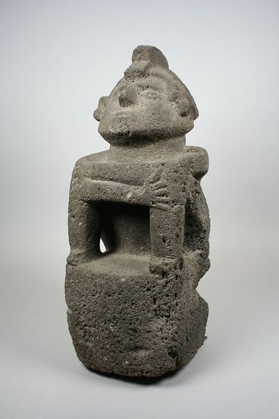 This Seated Male Deity was sculpted by an Aztec artist between 1300 and 1521. It is made from a reddish-brown volcanic stone known as basalt. The sculptor has used the stone’s inherent qualities of weight and density to convey a sense of permanence and power. The figure’s seated posture, with arms crossed over the knees, suggests introspection and authority. Basalt would have been laboriously quarried, transported, and then carved using tools made of even harder stone, copper, and wood. The amount of labor involved in producing a sculpture like this indicates the high status of the patron, whether ruler or temple, and of the sculptor who fashioned it. The smooth surfaces and precise lines show the skill of the artist, who was likely trained in a specialized workshop. The sculpture is not merely a representation of a deity, but an embodiment of cultural values and beliefs. Appreciating the material and the making of this sculpture helps us understand its full significance, reminding us that even the most spiritual objects are rooted in earthly realities.