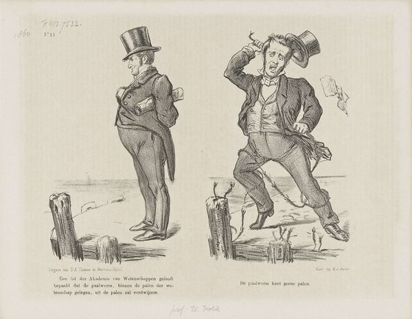 Honoré Daumier created this lithograph titled “Eleven degrees centigrade!” sometime in the 19th century. Daumier was a master of social satire, and here he uses the relatively new medium of lithography to comment on the social realities of his time. The print depicts two Parisian figures, likely bourgeois, uncomfortably navigating the cold weather. Through exaggerated postures and facial expressions, Daumier critiques the vanity and pretensions of the middle class, suggesting a disconnect between their self-image and the harsh realities of urban life. The biting caption, juxtaposing the discomfort of the cold with the notion of a "year of grace," adds to the satirical effect. Daumier's work often appeared in satirical journals like "Le Charivari," reflecting the growing importance of print media in shaping public opinion. To fully appreciate Daumier's art, one might delve into publications from the time, exploring the socio-political climate that fueled his sharp observations. By situating this artwork within its original context, we gain a richer understanding of its enduring relevance as a commentary on social behavior.