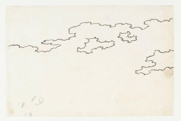 Editor: So, here we have Alexander Cozens' "A Schematic Cloud Study". It's a delicate drawing, just lines on paper, almost like a pattern. What do you make of it? Curator: I see Cozens engaging with the very means of landscape production. The schematic nature points to a method, a way of churning out landscapes, focusing on the material act of creation over the finished product. It challenges notions of artistic genius, no? Editor: Definitely! I didn't think about it as challenging genius, but I see what you mean. Curator: It prompts us to consider the social and economic forces at play in art creation. I find that fascinating! Editor: Me too, it makes me think differently about landscape art.