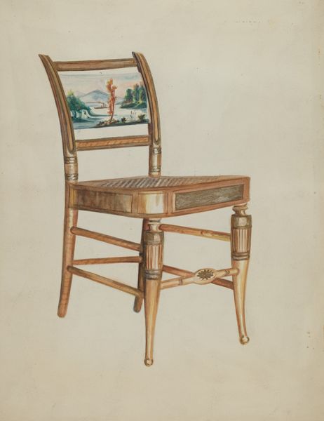 Samuel W. Ford made this watercolor of a chair, sometime between 1855 and 1995, no specific date, its about process and how things are made rather than necessarily who made them or when. The brushwork in this piece is gentle, almost shy, with delicate glazes and subtle gradients. Ford isn't trying to trick you into thinking this is a real chair, rather they seem to be suggesting that painting is a kind of translation of reality. The colors are muted, but carefully considered, and the overall effect is one of quiet observation. Look closely and you'll notice the way the artist has rendered the wood grain, hinting at the chair's history. It reminds me a bit of Fairfield Porter's paintings of domestic interiors, where everyday objects are rendered with a similar sense of intimacy. Both artists seem interested in the way that paintings can capture the fleeting beauty of the ordinary. Like all good paintings, it's not just about what is depicted, but how it's depicted.
