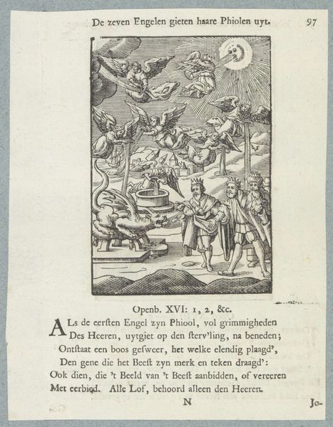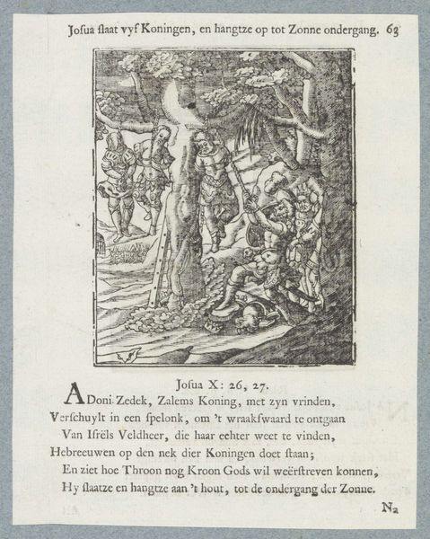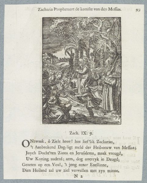 Editor: Here we have "The Entombment of Christ," an engraving by Christoffel van Sichem II, likely created sometime between 1629 and 1740. It feels almost… theatrical, you know? Like a stage production, with everyone gathered around the body. What strikes you when you look at this piece? Curator: The theater analogy is spot-on! See how Sichem II uses dramatic lighting, even within the confines of an engraving, to spotlight the figure of Christ? It's Baroque drama at its best, aiming to stir emotion. And those little details – the figures in the background processing up to the tomb, the three crosses still standing – those offer layers of narrative, don't they? Do you find yourself drawn to a particular element within this very busy scene? Editor: Actually, now that you mention the background, it’s almost like there are two separate scenes competing for attention. Curator: Precisely! It's like Sichem II is giving us the whole story, not just a snapshot. This was common in Baroque art – filling every space to emphasize the fullness of the story and its theological significance. Even that text below, a poem I believe, serves to underline the meaning. What do you make of the figure in the foreground looking straight at us, outside of the drama, on the left side of the engraving? Editor: It almost breaks the fourth wall! It makes you a participant in the scene, like you’re standing there, witnessing the burial. Curator: Exactly! This technique really pulls the viewer into the emotional intensity of the event. A little jarring, but that’s Baroque, isn't it? Grand gestures and emotional appeals to involve the faithful! Editor: So, it’s not just a depiction of a historical event, it’s really about creating a connection between the viewer and the religious narrative. I see that so much more clearly now, and I realize this piece has much more dynamism than I gave it credit for.