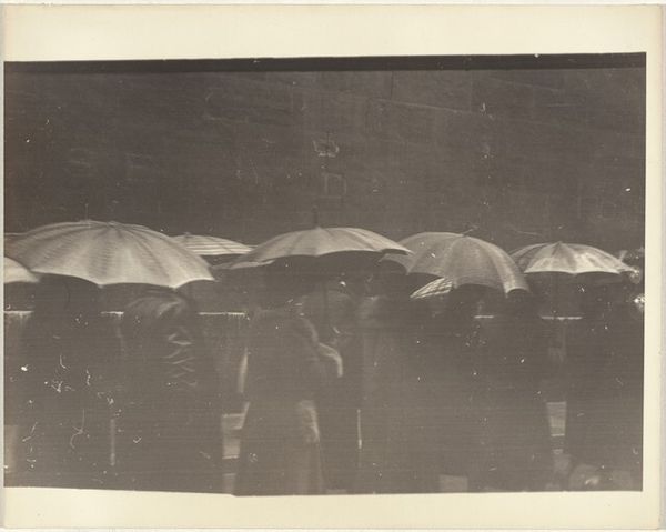 Curator: Gerard Castello Lopes’s gelatin silver print, "Dafundo," presents a scene of laundry hanging over a puddle. What’s your initial impression? Editor: Dreary yet captivating. The stark monochrome emphasizes the textures: the rough ground, the smooth cloth, and above all, the reflections. I wonder about the labor involved in creating that scene, doing laundry at that place. Curator: The laundry, hanging like ghostly flags, suggests purification. Water, a potent symbol in many cultures, here reflects not clarity, but a distorted, almost dreamlike version of reality. Editor: But it is not just about reflection; it is about the materials! The simple act of washing, the cotton, the way the light plays across the water—it all speaks to the everyday. Curator: Perhaps. Or maybe it speaks of the ephemeral nature of existence, of the transient beauty found in the most mundane of tasks, echoed in the reflection. Editor: True, it gives significance to overlooked aspects of daily life. The process and the reflection together create a powerful and memorable image. Curator: I find myself drawn into the dreamlike vision. Editor: And I am drawn to the grit, which makes it very real.
