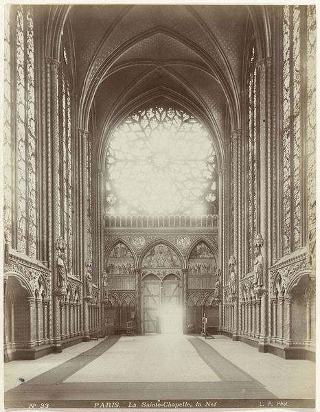 Léon & Lévy captured the interior of Seville Cathedral, presenting us with a sepia-toned photograph rich in religious symbolism. The towering columns and pointed arches evoke a sense of aspiration, directing the eye heavenward. Consider the columns—ancient symbols of strength and support, echoing through millennia, from the pillars of Egyptian temples to Greek porticos. Here, in Seville, they bear not only the cathedral’s physical weight but also the weight of faith, reaching for divine light. The high altar at the far end mirrors the hope for redemption and connection with the divine. This cathedral, like so many others, becomes a vessel for our collective yearning for transcendence. It’s a psychological space where stone and light conspire to lift the spirit and engage our deepest emotions. The cathedral is not just a building; it is a symbol constantly revisited, a testament to humanity's enduring quest for meaning.