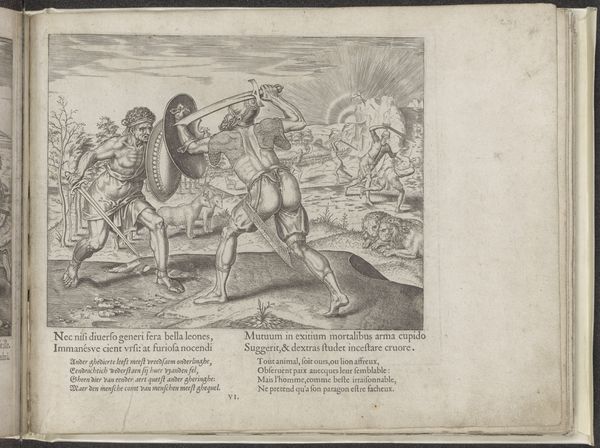 Curator: Oh, my… there's just so much happening here. I feel a little overwhelmed, but strangely drawn in! Editor: Precisely. This print, likely an engraving, titled "Spotprent op Cromwell, 1656," or "Satirical Print on Cromwell," made in 1656 by an anonymous artist, is absolutely overflowing with political commentary. The Baroque style, while typical for the time, almost exacerbates the chaotic scene. What exactly catches your eye first? Curator: That multi-headed beast! Cromwell himself seems to be riding this bizarre monster, a creature of pure "Grouwels," horrors it seems, based on the inscriptions above. He is the central, most prominent, most disturbing figure in the composition. It seems meant to represent the multifaceted nature of his tyrannical rule? Editor: It is. Note the careful allegorical construction. The figures of Ferdinand III and Phillip IV stand to the left, representing Catholic powers wary of Cromwell's growing influence. To the right, Mazarin appears, tethered and submissive. The piece is a visual denunciation of Cromwell’s protectorate, particularly targeting his relationship with France and his perceived religious deviations. It critiques the very structure of power he’d built. The tumbling objects at the bottom symbolize the collapse of traditional order. Curator: Right. I see now that Cromwell's holding a cup. And his stance, triumphant yet also slightly unhinged... He looks positively giddy with power. Do you think the artist felt a moral obligation to expose what they saw as corruption? Editor: Unquestionably. This print functions as propaganda. Look at the reactions of the people surrounding Cromwell—some are pleading, others seem resigned. It's crafted to evoke a very specific emotional response: fear, resentment, and a call to resistance against Cromwell's "tyranny." The linear quality is common to engraving as it attempts to convey clarity amidst complexity. Curator: It definitely has that effect! Thinking about today’s political cartoons, they share a lot of that same in-your-face energy. Though here, the layering of detail feels much denser. What a way to capture a historical moment, a boiling point in history. It seems a reflection on a time of intense upheaval. Editor: Indeed. A concentrated distillation of anxieties about power, religion, and international relations viewed through the critical, biased lens of the artwork, reflecting how deeply intertwined these spheres of influence were.