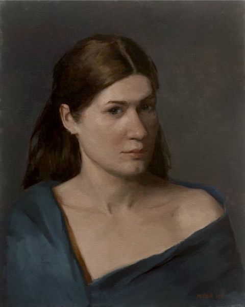 Curator: Feuerbach's "Portrait of an Italian Woman" from 1873. It's quite striking, isn't it? Done in oil, its realism certainly commands attention. Editor: Yes, the woman seems pensive and there’s a real simplicity to the portrait that I find very engaging. What do you see in this piece? Curator: Well, beyond its aesthetic appeal, I see it as Feuerbach engaging with the politics of representation. Italy in 1873 was undergoing significant social and political changes as the Risorgimento was being completed. Consider how he chooses to depict her not as an idealized beauty, but with a naturalism that highlights her humanity. It challenges the traditional objectification often found in portraits of women during that period. Do you think it’s a subtle form of resistance against established norms? Editor: That's a fascinating point. I hadn't considered it as a form of resistance. I was more focused on her gaze, which avoids direct engagement with the viewer, suggesting maybe introspection, rather than defiance. But looking closer now I can see the point of portraying her more like a woman, rather than as a muse. Curator: Exactly! The positioning of her body is important, as well, since it suggests dignity but, on the other hand, you could claim she doesn’t really have an attitude against these traditional standards; after all, she could simply be part of a depiction. Editor: Now I see the intersectional perspective better: on one hand it might challenge female portrayals, while on the other the woman simply poses in a more classical style, even with such candid gaze. Curator: Precisely! Thinking about historical and social contexts enhances how we approach and value this artwork. Editor: Definitely. I now view it as a piece actively engaging with, or even critiquing, the visual and cultural politics of its time. Thank you!