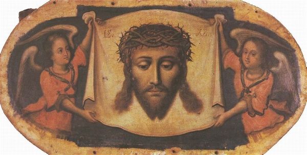 Editor: Looking at Lembesis’s “Hagiography,” I'm immediately struck by how intensely the figure stares out. The oil paint gives it a textural, almost aged quality. What kind of historical narratives do you think this piece engages with? Curator: It is intriguing, isn’t it? The work invites us to consider the role of the icon, not just as a religious object, but as a potent political image. Think about Byzantium – these images weren’t merely devotional; they were assertions of power, visual representations of imperial ideology diffused throughout society. Editor: So, you’re saying this image might carry a deliberate echo of that imperial visual language? Curator: Precisely. Lembesis knowingly adopts that visual vocabulary. But what happens when a modern artist resurrects such a loaded form? What message is being conveyed by utilizing and, perhaps, subtly subverting it? Editor: Maybe he's questioning the relationship between religious iconography and power, almost repurposing a symbol of authority? Curator: Interesting thought. Consider where this work might have been displayed, and for whom. Was it intended for a church, a gallery, a private collection? Its public function shapes its meaning. Does knowing Lembesis’ background influence your view? Editor: That really reframes how I see it. I was focused on the spiritual aspect, but now I realize there’s a whole layer of social commentary I was missing. Thanks, this was really insightful. Curator: Likewise, considering the public role of art can provide a profound new understanding.