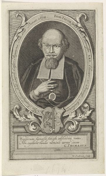 This print of Johannes Eusebius Nieremberg was made in 1659 by V. Guigou. The medium is engraving, a printmaking process where lines are incised into a metal plate, which is then inked and pressed onto paper. The image’s visual impact comes directly from the painstaking labor involved in its making. Each line, each curve, had to be physically carved into the metal. Notice how the density of these lines creates areas of shadow and depth, giving the portrait a sense of volume. The engraver, whose name we know, would have possessed highly specialized skills, passed down through a lineage of workshops and studios. Prints like these facilitated the spread of ideas, both religious and philosophical, during the early modern period, connecting the worlds of craft and intellectual labor. The act of engraving, with its blend of technical skill and artistic expression, challenges our conventional separation of art and craft.