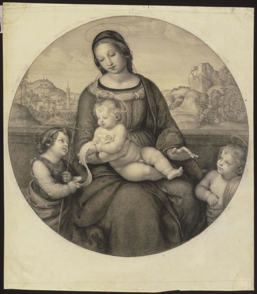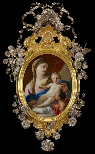Editor: This is "Madonna and Child with the Infant John the Baptist and St Clara," an oil painting from around 1520, currently at the Rijksmuseum. The artist is anonymous. There's a pensiveness about the subjects; they all seem burdened. What stands out to you? Curator: I see a complex interplay of power and vulnerability encoded within this seemingly traditional religious scene. How do you interpret the Virgin’s downward gaze, positioned as she is between St. Clara and the two children? Does it strike you as submission, or something else? Editor: I guess I assumed it was humility, a common theme, but seeing it as something else… I’m not sure. What else could it be? Curator: Consider the historical context. Anonymous as the artist is, we can read the artwork as a statement about female agency within prescribed societal roles. Mary, Clara—their representations are so tightly controlled. Yet, aren’t their very existence as subjects in a painting also acts of subversion? A challenge, even if subtle, to the patriarchal structures that defined their lives? Note the restricted colour palette, heightening the figures’ emotional weight, reflecting the limited freedoms afforded to women and children. Editor: So, the artist is using the very restrictions of the time to comment on them? Curator: Precisely. It invites us to consider whose stories are told, and how, especially when the artist him or herself may be marginalized within society and its power dynamics. Editor: I hadn't considered that perspective. Seeing it through that lens really changes the emotional impact. I appreciate your insights. Curator: And I yours. Considering how contemporary theory influences our engagement with artworks centuries old is important for art to stay alive.