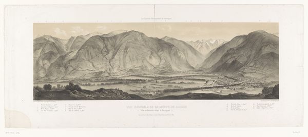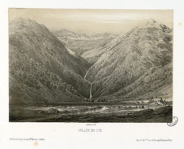 "Arreau - Vue de la route du col d'Aspin" is a lithograph by Maxime Lalanne, offering us a glimpse into the French Pyrenees through the eyes of a 19th-century artist. Consider the social context: Lalanne, born in 1827, came of age during a time of significant social and political change in France, and landscape art was a popular genre, often reflecting a romanticized view of nature. This vista of the Aspin Pass isn't merely a depiction of mountains; it speaks to the cultural values of the time, to the relationship between humanity and nature. What does it mean to look at a landscape through the lens of the 19th century, and how does our contemporary understanding of environment, shaped by awareness of climate change and ecological concerns, change our perception of this image? While the lithograph appears serene, it prompts us to reflect on our place in nature, and on the ways in which landscapes are laden with cultural and historical meanings.