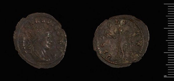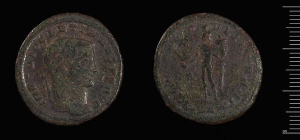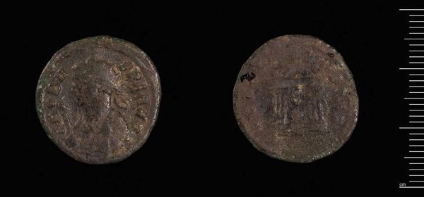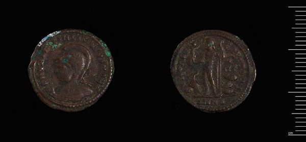 Curator: Isn't it amazing? Here we have a Follis of Maxentius, Rome, presently residing at the Harvard Art Museums. I find myself pondering the weight of history it carries within its mere 5.87 grams. Editor: Well, my first impression is of something time-worn, a whisper of the past clinging to this small, dark circle. Is it bronze? Curator: Likely so. Beyond just the material, this coin broadcasts Maxentius's authority; the images and inscriptions were carefully considered for their propaganda value in the Roman Empire. Editor: Propaganda, yes, but also survival, don't you think? Imagine holding the power to mint, to stamp your face on currency, to literally circulate your image throughout the land. Curator: Absolutely, it’s about being seen, being remembered. This coin, like many others, served as a portable monument. Editor: It's funny how something so small can feel so monumentally weighty, isn't it? The past, pressed into metal. Curator: Indeed. A tangible fragment, inviting contemplation.
