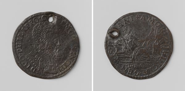 Editor: Here we have a bronze relief, a portrait of Charles V, the Holy Roman Emperor. It's dated sometime between 1519 and 1556. The first thing that strikes me is how much information is packed into such a small space, a whole life seemingly captured on this little disk. What jumps out at you when you see it? Curator: What leaps out, my dear Editor, is the audacity of such an attempt! Think of the world in those times - constantly on the brink of change, the known map expanding like wet ink on parchment, the very notion of "emperor" being questioned by the rise of new powers. And here's this bronze bauble, trying to encapsulate it all! The weight of it, physically and metaphorically, makes my fingers tingle with excitement. Do you notice the laurel wreath on the reverse? Almost as if to declare "We have conquered... what’s next?" Editor: I do! It’s like they’re asking us. I also see some faint water lines too... I hadn’t noticed that. I wonder what all the imagery could represent, apart from just Charles V? Curator: That is precisely what tickles my fancy the most, isn't it? "Plus Ultra," beyond the Pillars of Hercules, a motto suggesting pushing past limits. Imagine Charles V constantly trying to break previous bounds… But remember this small disc was created at a time when even questioning limits could land you in very hot water! Is he boasting, or confessing an existential dare? It dances on that delicious knife-edge. Editor: Hmm, food for thought. It is a tantalizing thought indeed. This chat has made me appreciate it beyond just being a historical artifact – there is true artistry here. Curator: Exactly! It is almost like catching a glint of light reflecting on a tumultuous ocean; what appears a harmless decorative art conceals turbulent and uncharted depths! A fitting mirror for a Holy Roman Emperor, don't you agree?