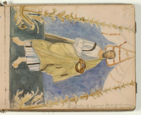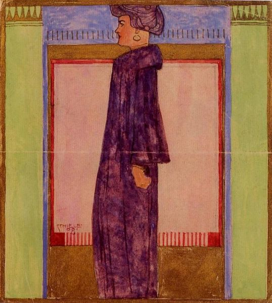 Editor: This is Nicholas Roerich's "Householder," painted in 1914. The colors are quite vibrant, and there's a kind of mystical quality to the figure. The whole scene feels very staged, almost theatrical. How do you interpret this work, especially considering the time it was made? Curator: Roerich was deeply engaged with Russian history and folklore, particularly the pre-Christian Slavic cultures. He saw art as a spiritual tool, a way to connect with deeper, ancient truths and advocate for preserving cultural heritage. Consider how the figure, possibly a sage or prophet, stands imposingly amidst these stylized buildings. Do you notice any elements in the landscape or architecture that might suggest specific social or political ideas? Editor: I see a kind of utopian vision, maybe. The buildings seem…well, safe, but also strangely disconnected. The figure seems separate from the buildings themselves. Curator: Precisely. The "Householder" isn't simply a portrait. Think about the anxieties of early 20th-century Russia, on the brink of massive social upheaval and revolution. Roerich, through his art, posed crucial questions: who are we, and what is our responsibility to the past, even as we hurtle towards the future? The figure can be read as the ethical centre or a relic in this landscape. Editor: So, the "Householder" represents tradition standing against or maybe within modernity? Curator: Indeed. And, isn't there also the matter of who gets to define that tradition, and whose voices are privileged? Perhaps he’s not just standing *within* it, but also challenging its perceived notions and limitations. It encourages a continuous re-evaluation. Editor: I didn't consider that. It adds a whole other layer to my reading of this work. Curator: These dialogues are precisely how we disrupt and reshape conventional narratives around art, bringing into play gender, class, and race, prompting ongoing revision. Editor: This conversation has changed the way I look at this piece. It’s not just a mystical figure; it’s about a society in transition. Curator: Absolutely. And remember, engaging with art like this helps us actively reshape history's dominant narratives and make sure that inclusivity is always a guiding principle.