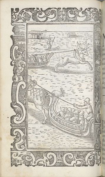 Editor: Here we have an anonymous woodcut, "Ch. 48. A Journeyman's Ship," housed at the Harvard Art Museums. There’s a real sense of organized chaos in this image. What do you see in this piece? Curator: The jester hats immediately suggest a carnivalesque atmosphere, a world turned upside down. Notice how these figures, typically associated with mockery and satire, are navigating ships. Could this be a symbolic inversion of societal roles? Editor: Perhaps they represent the folly of those in power? Curator: Precisely. Symbols often carry multiple layers of meaning, shifting with time and cultural context. What appears chaotic might be a carefully constructed critique. This image holds within it an entire cultural memory. Editor: I hadn't considered the layered symbolism before. Curator: Visual symbols give insight into cultural memory; the ability to decode these images is a powerful tool for exploring our shared past.
