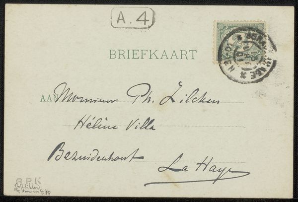 Here we have a postcard to Philip Zilcken, by Carel Nicolaas Storm van 's-Gravesande, but we don’t know exactly when it was made. It's the kind of thing you might dash off, a quick note, so the handwriting feels really personal, looping and kind of urgent. You know, the ink is light, almost transparent, and in some places, it’s darker, where the pen lingered a bit longer. That slight variation in tone gives it a real sense of rhythm. The way the letters curve and connect, it’s like a little dance. I’m especially drawn to the flourish under 'La Haye'—it’s so confident, a real signature move. It’s a bit like looking at Cy Twombly’s scrawls. On the surface, it might seem simple, but it’s loaded with personality, with intention, and maybe even a little bit of mystery. Art isn’t about fixed meanings, is it? It’s more about opening up a space for possibility, for connection.