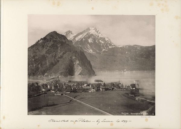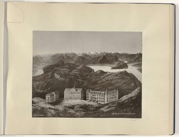 Editor: Here we have an anonymous gelatin-silver print, likely dating from around 1895 to 1905, titled "View of the Rigi Känzeli viewpoint and Mount Pilatus." It's such a stark, almost industrial take on a mountain landscape. What do you see when you look at this photograph? Curator: The labor involved in producing this image and accessing this viewpoint is interesting. Think about the industrialization and burgeoning tourist industry of the late 19th century. The materials themselves – the gelatin-silver print – speak to the commodification of the landscape. Editor: Commodification? How so? Curator: Photography enabled mass reproduction. This image isn't just about a view, it’s about the *accessibility* of that view through industrial processes and technology. The development of the gelatin silver process, which allows for sharper and more easily reproducible images, plays a key role in circulating and consuming this landscape as an object. Consider, too, how infrastructure like the Rigi Railway altered the relationship people had with nature; this photograph becomes evidence of those changes. Editor: That's fascinating. It's not just about the mountains, but also about how we *get* to the mountains, literally and photographically. The image itself is a product of these changing material conditions. So the materials used to *make* the photograph are related to industrial production… Curator: Precisely. And to consumerism, as these prints were sold to tourists to remember, to possess, and perhaps even show off their experiences of nature through the consumption of technology. What looks like a straightforward landscape hides layers of socio-economic and technological processes. Editor: I never would have thought about a landscape photograph that way! I was so focused on the mountain, and the view… now I see so much more! Thanks! Curator: Indeed, materiality guides us to consider how technology transforms even seemingly untouched landscapes into commodities.