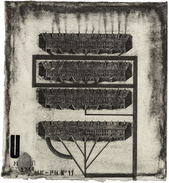Pavlo Makov made Neighbourhood #10 with etching on paper. It's a small work, so get up close and let your eyes wander through the architecture. Look at the lines. Each one feels deliberate, like the artist is mapping out not just a physical space, but also a system. The buildings, so uniform, are connected by these branching lines, almost like veins or roots. Is it a neighborhood or a network? The texture of the paper is rough around the edges, like the edges of a memory. And those tiny windows, each one a little rectangle of possibility. What stories do they hold? Does the symmetry offer comfort, or does it hint at something more unsettling, a kind of planned existence? Makov's work often explores urban themes, reflecting on the architecture that shapes our lives, so this feels like part of a bigger conversation. Like Piranesi’s architectural fantasies, this piece invites us to get lost in its details, to find beauty and maybe a bit of unease in the patterns of our world.