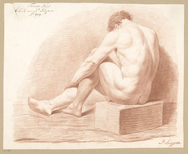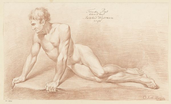 Hendrik Willem Caspari created this red chalk drawing in 1804. The choice of chalk as a medium is significant. It's an unassuming material, really just a type of soft limestone, yet it has the capacity, in the right hands, to create effects of great subtlety. You can see this at work in the drawing itself, in the tonal gradations Caspari achieves. Notice how he models the figure, moving from shadow to light with great finesse, building up form with closely-hatched lines. This wasn't merely a display of the artist's skill, but an exercise in visual rhetoric. Caspari is demonstrating his mastery of the human form, his ability to portray it with both accuracy and grace. And in doing so, he elevates a humble material – chalk – into a vehicle for high art. It's a reminder that the value of art is not just in the materials used, but in the skill and vision of the artist who transforms them.