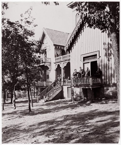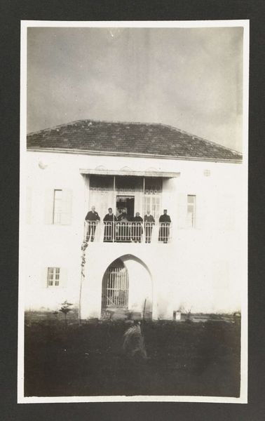 Curator: This is a fascinating image from possibly 1925 by A.G.A. van Eelde. The artwork, captured through photography, is titled "Zomerverblijf der Shahs nabij Teheran, Perzië," or "Summer residence of the Shahs near Tehran, Persia." Editor: My first impression is of stillness, of a forgotten grandeur. The black and white amplifies a sense of distance, both temporal and emotional. There is such rigidity, an imperial architectural statement asserting itself over nature. Curator: Yes, you are right, the architecture has a commanding presence, certainly designed to reflect the Shah's power, but there's also the tradition of Orientalism at play here, a Western fascination and interpretation of the East through imagery and representation. How does that inform your reading of it? Editor: Precisely. The "orientalism" tag reveals layers of socio-political and aesthetic concerns. As you mention, we’re observing not just a place, but a Western construction of it. The lack of people contributes to a narrative about the "exotic" other; observe that a vacant scene allows Western viewers to project their fantasies or expectations of the East without confronting complex realities. Curator: Considering that the picture seems staged, it really accentuates your point. What I find particularly intriguing is the water channel cutting through the scene's lower portion. Its geometry is really interesting in the frame. Editor: Right. That suggests not only opulence but also control. This could also refer to power dynamics between humans and nature; like water being controlled by civilization. Are the Shahs mastering the natural environment, imposing authority and power? It adds depth to our interpretation and complicates an immediate reading of serenity. Curator: Indeed. The historical and political subtexts, as we see, can be rather complex. This image really makes you pause and reflect on both the art and the colonial and socio-political environment of its production and reception. Editor: And the lasting impact of such images—they inform contemporary narratives of identity and place. Recognizing that orientalist legacy helps to develop better nuanced readings of our own cultural production.