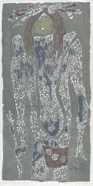 Editor: Here we have Marino Marini’s "Horse", rendered as a monochrome print. The horse itself is quite angular, almost blocky in its form, with these contrasting tones laid over a smoky, textured ground. There's a certain stoicism or perhaps even melancholy I read in its posture. What do you see in this piece? Curator: Immediately, I see echoes of ancient equestrian symbols. Think of the power horses held in mythology – strength, nobility, freedom, but also sacrifice, a carrying of burdens. Marini reduces the form to its essence, almost like an artifact. Does the heavy ground perhaps signify an obstacle, a weight? Editor: It's interesting you say obstacle. I hadn't considered that. Curator: Consider how often the horse is paired with a rider in Marini's work. Here, it stands alone, stripped bare. It becomes an emblem, charged with cultural memory. Are we seeing the imprint of war, perhaps? The aftermath? Look at how the textures seem scarred, wounded. What feelings do these textures elicit for you? Editor: A sense of unease, certainly. The rough texture coupled with the simplified form definitely steers me away from any romantic interpretation of the horse. Curator: Precisely! It’s a potent reminder of the power of symbolism and how artists can channel cultural narratives to provoke deeper emotional and psychological reflections. So, where do we land with this lone horse? Editor: I think I see a powerful visual metaphor of resilience after something catastrophic now, stripped back but still standing, bearing the marks of survival. Thank you for broadening my interpretation.
