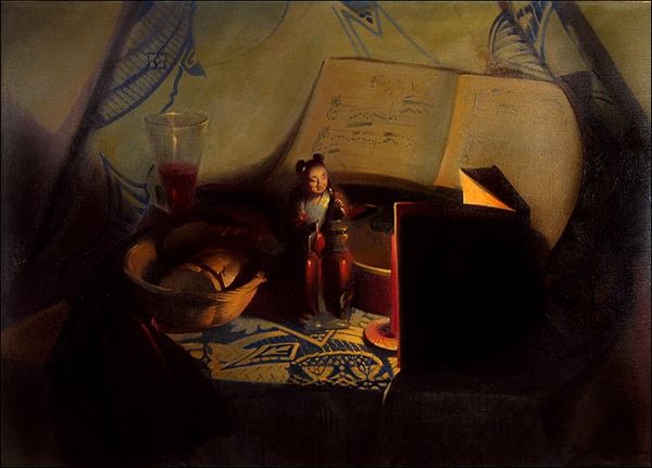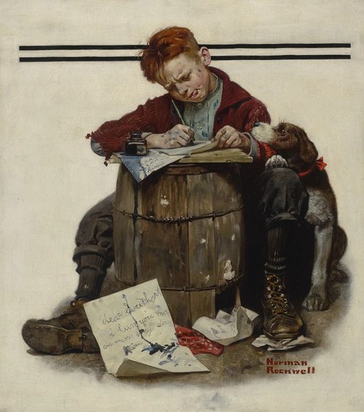 Curator: Nicolaes Maes painted "The Account Keeper" in 1656. Note the woman at her desk, surrounded by ledgers, a world map hung prominently behind her. The overall impression is one of quiet industry, or perhaps even…exhaustion. Editor: Yes, there’s a pronounced stillness. The palette is muted, primarily browns and creams, creating a somber atmosphere. Notice how the composition leads the eye down, as if mirroring the weight of her work. Curator: It's intriguing how Maes blends genres here. While seemingly a genre painting of everyday life, it also flirts with history painting. That map above her desk… it signifies global trade, the expansion of Dutch power during the Golden Age, shaping the role of women and family economics. Editor: Absolutely. The light catches the map, giving it prominence over everything else. But even in a scene representing national power, Maes subtly draws us in with compositional nuances: The desk acts almost as a proscenium. Curator: She is weary though. Her hand props up her head. And do you see the small portrait hanging on the wall to the left? This symbolizes family. He perhaps is her strength but also possibly is related to the reason for her exhaustive bookkeeping labor. This image could reveal broader issues of generational expectations in Holland’s burgeoning economy. Editor: It's masterfully rendered. I am intrigued how all the lines, all the receding space within a confined area point toward the woman who takes up just a small corner of that vast cartography, suggesting something larger beyond a person at her work. Curator: This painting prompts me to consider not only who this woman *is* within a family history but what role her work held. It really is something else when viewed from this perspective. Editor: Precisely, there’s a lovely formal interplay. Looking closer gives a way to contemplate both her and the scene around her.