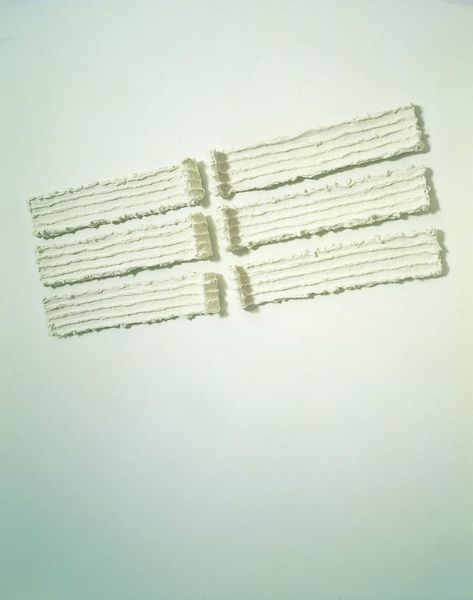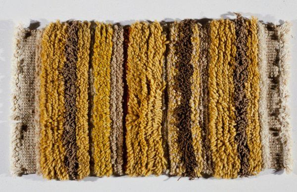 This anonymous "Rug or Floor Pillow" is an invitation to consider art as a tactile, lived experience. The rug's surface is a field of woolen tufts, a landscape of soft peaks and valleys. Small dark markings scattered irregularly across the material create shadows which give texture to the piece. The process is evident; you can imagine the maker's hands knotting each strand, a meditative act of creation. The texture is almost palpable, inviting touch, while the colour palette is both muted and grounding. The irregularities and imperfections become part of its charm, resonating with the Japanese aesthetic of wabi-sabi, which embraces the beauty of imperfection and impermanence. This rug reminds me of the work of Sheila Hicks, whose textile sculptures explore similar themes of texture and materiality. This rug is more than just a functional object; it's a testament to the beauty of craft and the power of art to transform the everyday.