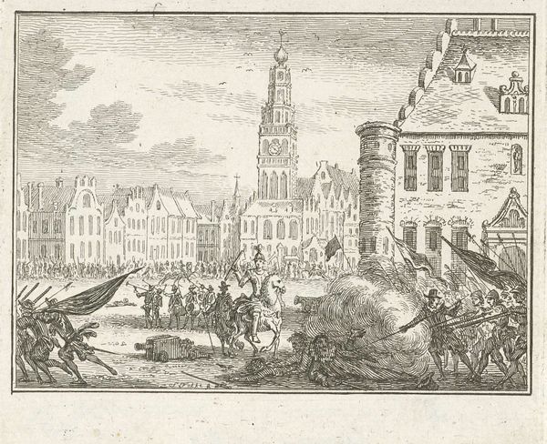 Simon Fokke made this print, Strijd met de wederdopers op de Dam te Amsterdam, 1535, using etching and engraving techniques sometime in the 1700s. The printmaking process is fascinating, it starts with a metal plate, usually copper. The artist then covers the plate with a waxy, acid-resistant substance, and draws their design into this layer, exposing the metal. When the plate is dipped in acid, the exposed lines are eaten away, creating grooves. The deeper the lines, the more ink they hold. Fokke would have then applied ink to the plate, wiping the surface clean so that ink only remained in the etched lines. Finally, damp paper is pressed against the plate, transferring the ink and creating the print. Note the linear quality, and precision of the image, achieved through this meticulous method. Printmaking allowed for the wide distribution of images, ideas, and narratives, playing a crucial role in shaping public opinion and historical memory, and in this case, memorializing a violent historical moment.