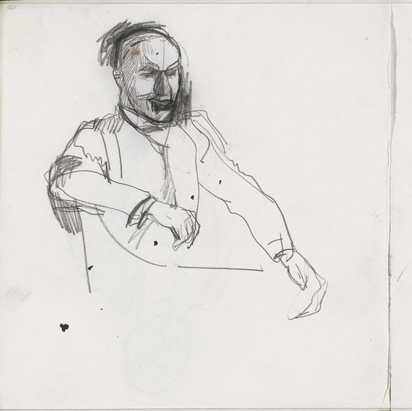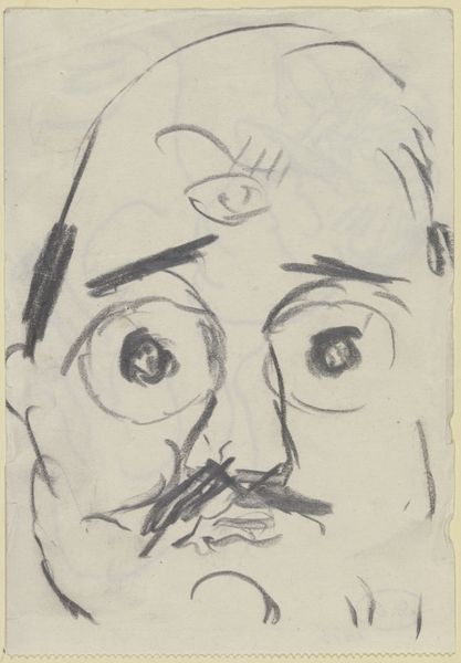 Curator: Let's spend a moment with this drawing attributed to Mark Rothko, a “Caricature Head of Man with Mustache [recto].” Executed with pencil and ink, it provides an intriguing counterpoint to his more famous abstract works. Editor: My first impression is one of controlled chaos. The lines are frenetic, almost violently applied, yet they coalesce into a recognizable, if exaggerated, face. There’s a sense of unease, perhaps even a bit of mocking contempt. Curator: Absolutely. As a caricature, it relies on distortion to make a point. One might consider how societal norms and power structures inform Rothko's exaggeration of the subject’s features. Is it a critique of masculinity, a commentary on the banality of the bourgeois? Editor: It’s compelling to consider this within the context of Rothko’s biography. A Jewish immigrant who faced antisemitism, might his caricatures express a frustration with assimilation and societal expectations? Curator: Precisely. The role of caricature has historically been a way to reinforce social prejudices and marginalize minorities. It would be helpful to study which elements of the depicted subject are exaggerated, and why. This could lead us towards an understanding of broader social issues Rothko may have been addressing. Editor: I find it hard to separate the act of caricature from power dynamics. Even without specific historical context, there’s an inherent imbalance in the artist’s gaze and the subject’s vulnerability. We see not only the depiction, but a shadow of societal judgments, too. It almost begs us to think of race, class, and gender. Curator: And how those aspects intersect and influence perception. These types of drawings are typically completed on a quick and intimate basis. I think they act as cultural artifacts providing insight to the politics of identity. Editor: It reminds us that even in the artist’s sketchbook, the echoes of power resonate. It serves as a poignant commentary of social standing through what the artist chooses to enlarge. Curator: Thank you for enriching this conversation with historical depth. This quick sketch provides many new considerations of the social undertones presented in Rothko’s full artistic production. Editor: The complexity behind a seemingly simple drawing will resonate with listeners long after the audio ends.