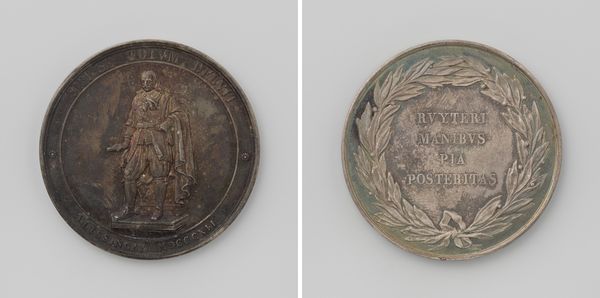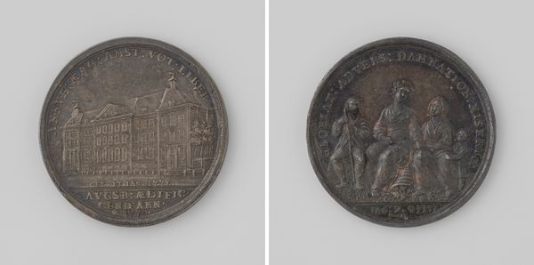This silver medal, commemorating the 150th anniversary of the Frisian Mennonite Society, was created in 1845 by Tjeerd Keikes. The piece reflects the values and identity of a religious community navigating a rapidly changing world. The imagery on the medal is rich with symbolism. A central female figure, perhaps representing charity or wisdom, sits flanked by figures offering and receiving alms. This echoes the Mennonite commitment to community support. During the 19th century, religious societies played a critical role in social welfare, providing aid to those excluded by mainstream society. Such groups often created a sense of belonging and mutual aid, especially valuable for marginalized communities. While celebrating their history, it also subtly reinforces their role within Dutch society. This medal, beyond its commemorative function, serves as a statement of identity and purpose.