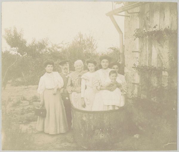 This is "Fisher Lassies", a calotype photograph made by Hill and Adamson sometime between 1843 and 1848. The image is dominated by a warm, sepia tone that casts a soft, almost dreamlike quality over the scene. Five young women are grouped together with a large wicker basket in the center, their faces framed by white headscarves. The composition is carefully structured, employing the basket as a focal point which divides and anchors the figures, while the play of light and shadow across their faces adds depth and texture. The women's striped dresses create a visual rhythm that moves across the image, adding a subtle sense of movement to what is essentially a static scene. Photography in this period was as much about the science of representation as it was about art. It served as a means of documenting social types, capturing the essence of everyday life. Hill and Adamson's choice to focus on these working-class women elevates their status through the formality of portraiture, inviting us to consider the social and cultural codes embedded within such imagery. It challenges the period's strict class boundaries while creating a lasting document of Scottish life.