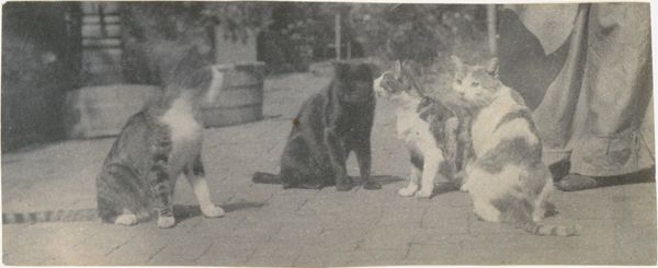 Curator: Here we have Richard Tepe’s “Jachtopziener Frans Stark met zijn hond Nemo in de Muyduinen op Texel,” a gelatin silver print, likely from sometime between 1900 and 1930. Editor: The overall effect is strikingly still, almost solemn. Stark's gaze is intense, the dog relaxed but alert—there’s a clear bond here. The monochrome tones create a lovely nostalgic feel. Curator: The gelatin silver process was pivotal. Its development allowed for mass production, bringing photography to a broader audience. Consider Tepe’s studio and the local clientele; this image provided both service and social representation, right? It captures the work and place within a larger system of production, not simply documenting a man and his dog, but showing a local authority on Texel. Editor: I agree—seeing beyond a sentimental portrait is key. Let's consider the sitter and his social standing. As a "jachtopziener," or game warden, Stark was charged with maintaining local ecological governance and social order. Curator: It’s interesting to think about the labour connected to his role. How the materials for both the print and the sitter’s garb were manufactured and accessed, particularly when considering naturalism as a developing style. What’s reflected in Stark’s attire connects to the place, emphasizing the man’s relationship to this environment, in terms of local or even national identities, you might say. Editor: Right, and by extension, this representation of work—man and dog as collaborators within a controlled rural landscape—needs interrogation. Were all members of this community afforded similar representation or social standing? Who gains and who loses through naturalized power structures on Texel at this moment in time? Curator: Those questions really help us dive deeper into understanding the power dynamics represented, prompting one to explore archives to know whose perspectives have been sidelined to create this particular story. Editor: Absolutely. I’m left thinking about the layers of meaning a seemingly simple portrait can hold when we actively look at it intersectionally, socially. Curator: It's an insightful and rewarding reminder to consider art’s function within systems of exchange. Editor: Agreed; every image is also an artifact of the processes used to create it.