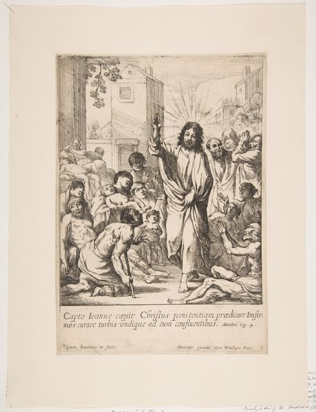 William Luson Thomas made this print of "The Mission of the Apostles" for the *Illustrated London News* using wood engraving, a process that allowed images to be easily reproduced and widely disseminated. The image depicts the apostles at the foot of the cross, ready to spread the gospel. Consider the role of illustrated newspapers in Victorian England. Publications like the *Illustrated London News* brought images of current events, social issues, and religious scenes to a broad audience. This print, based on a painting by Charles Gleyre, reflects the cultural and religious values of the time, emphasizing the importance of faith and the spread of Christianity. The composition, with its emphasis on clarity and emotional impact, aimed to inspire readers and reinforce existing social norms. To understand this print more fully, we might research the circulation and readership of the *Illustrated London News*, and compare its visual style with other religious imagery of the period. This would illuminate the complex relationship between art, media, and society in Victorian England.