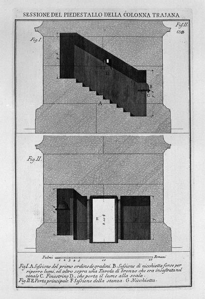 Here is the story about the artwork: Giovanni Battista Piranesi created this etching, "In the House of Pompeii," using ink on paper. The print meticulously depicts the architectural details of a wall in Pompeii, balancing dark, graphic blocks with expanses of white space. This interplay structures the viewer’s perception of depth and form. Piranesi's rendering reduces the ancient design to a series of contrasting planes. Ornamentation is minimal yet strategically placed, drawing the eye upward. Linear precision defines the work, highlighting the artist’s interest in the formal arrangement of architectural elements. These lines create a rhythm, almost a musical score of visual components. The etching reveals an engagement with Classical ideals, filtered through an 18th-century lens. Piranesi uses a semiotic system of lines and shapes to capture not just the appearance but the essence of Roman design. This piece invites ongoing dialogue about how past aesthetics influence contemporary perception and form.