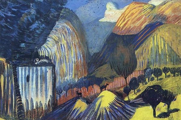 Margit Selska made this landscape painting titled, "Bay," using vibrant colours. The composition, with its simplified forms, invites us to think about the relationship between art and the representation of the real world. Selska was a Ukrainian artist who worked during the Soviet era. This painting speaks to the artistic constraints imposed by the state. During this period, artists were expected to conform to the style of socialist realism and create work that glorified the Soviet Union. While this painting is not overtly political, it can be interpreted as a subtle act of resistance against the artistic norms of the time. Its stylized forms and bold colors create a sense of distance from the physical world, evoking a dreamlike and personal vision of the landscape. Art historians play a vital role in understanding these complex relationships between art and society by examining the political and cultural context. We can gain a deeper appreciation of the artist's work and its place in history.