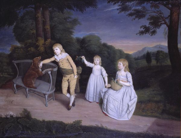 Thomas Lawrence painted "Portrait of the Children of Lord George Cavendish" with oil on canvas. Lawrence was one of the leading portrait painters in England during the late 18th and early 19th centuries. This painting offers a glimpse into the lives of the aristocracy, emphasizing the social expectations of the time. The children are presented in a natural setting, an emerging trend that allowed for more relaxed and intimate portrayals, yet their clothing signifies their social standing. Notice how gender is subtly performed. The boys are in commanding poses, while the girl is nestled safely between them. Lawrence’s portraits often reflected the sitter’s social status. "I don't believe I have ever met any one in my life who has placed me at ease so completely at first sight," he said about a sitter. This image invites us to consider the complex interplay between personal identity and social expectations during a period of significant social change.