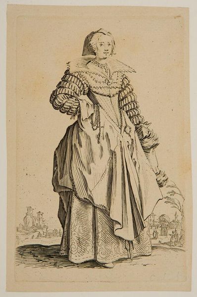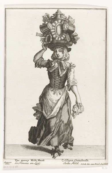 Julien Le Roy created this print, titled “Gallerie des Modes et Costumes Francais,” in 1778. It comes from a time of elaborate fashion and rigid social structures in France. The image depicts a woman of the French upper class, her attire and posture signaling her elevated social status. She is literally weighed down and constrained by the very fabrics that signify her rank, from her towering wig to the layers of her ruffled gown. The print provides insight into the construction of feminine identity during the late 18th century. Consider the artistry and labor it took to create such garments. The print asks us to reflect on the vast inequalities of the time, where the elite flaunted such extravagance while others struggled. It serves as a reminder of the complex interplay between fashion, identity, and social power.
