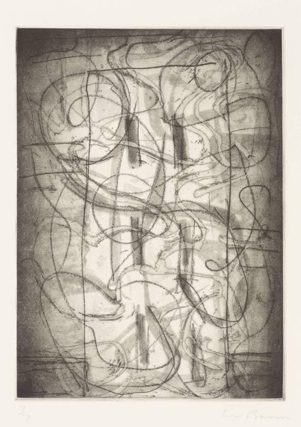 This etching, 'Untitled (Figure)' was made by Anne Ryan sometime in the mid-twentieth century. She's created a figure out of minimal, looping lines, and the process feels so immediate, like a thought captured in ink. The texture of the paper is really present; you can see how the ink subtly catches on the surface. The lines themselves aren't precious, they’re kind of wobbly and uneven, which gives the figure a real sense of movement and vulnerability. Look at the flower or rosette at the figure's chest. It's a simple shape, but it adds a focal point, a little burst of energy right at the heart of the composition. It reminds me of the work of Agnes Martin, another artist who found so much in so little. Ultimately, Ryan's print invites us to find our own meaning, to participate in the act of seeing and feeling. It's a reminder that art is not about answers but about endless possibilities.