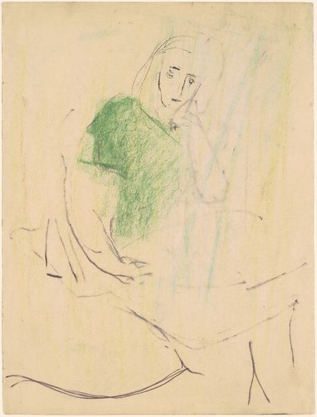 Editor: This sketch by Charles Martin, a graphite drawing, appears to depict a woman resting her head on her hand. It feels quite intimate. What do you see in this piece, from your perspective? Curator: I see the potential for resistance in the quiet moment. Consider the historical constraints on women's agency. Is this rest, or a moment of contemplation before action? Editor: That's interesting. I hadn't considered it as a form of resistance. Curator: Martin was working during a time of immense social change. How might this image speak to the emerging role of women in society? Does her gaze meet ours, or is she looking elsewhere? Editor: I see what you mean. It does add a layer of complexity. Thanks for sharing your insights! Curator: My pleasure. It’s always enriching to consider how art reflects and shapes our understanding of social justice.